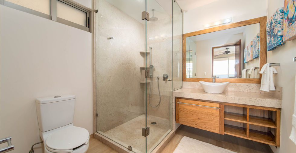 The condo’s interior is designed to blend modern sophistication with comfort. Expansive windows flood the open-concept living space with natural light, creating a seamless flow between the living, dining, and kitchen areas. High-end finishes and stylish furnishings enhance the sense of luxury, while a private terrace provides the perfect space to unwind and take in the tropical surroundings.