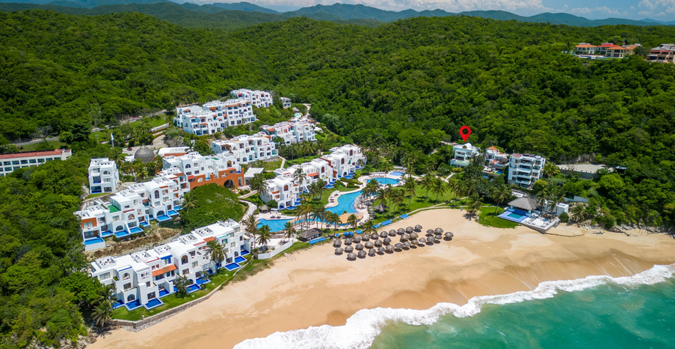 Step into paradise with Lu Iba! Lu Iba meaning Villa in Heaven, a stunning beachfront villa located within the exclusive Camino Real resort property in Huatulco. This luxurious home offers 6 bedrooms, open-air living and dining spaces, and a private elevator providing seamless access to all levels, including the beach.