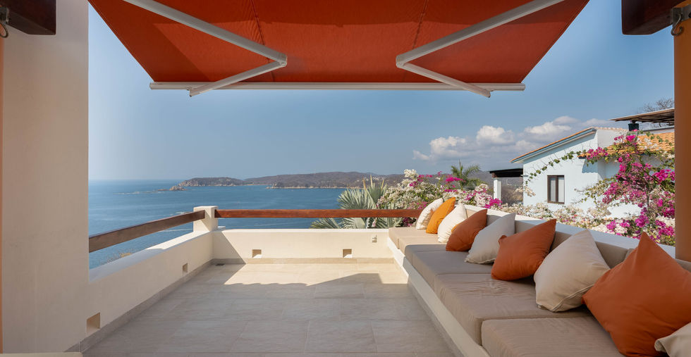 Perched on a stunning cliffside, this exquisite oceanfront villa in Mirador Chahué, Huatulco offers an unparalleled living experience, where panoramic ocean views and breathtaking sunsets create an atmosphere of pure tranquility. Designed for both comfort and elegance, the property includes three bedrooms, along with a studio and a TV room that can be easily converted into additional bedrooms—transforming the villa into a spacious five-bedroom retreat. With 4,305 Ft2 (400 M2) of living space on an 8,665 Ft2 (805 M2) lot, this residence beautifully merges luxury with the natural surroundings.